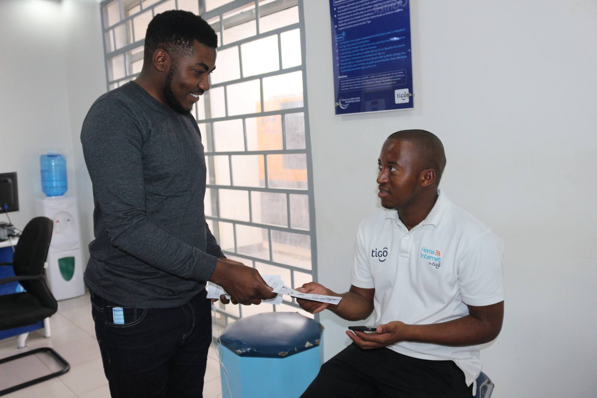 Afisa Tathmini na Ufuatiliaji wa Shirika lisilo la Kiserikali la Women Wake-up (WOWAP) Issah Shayo, akimkabidhi vipeperushi hivyo Mwakilishi wa Wafanyakazi wa Kampuni ya Simu ya Tigo, Basil Pesambili kwa niaba ya wenzake.