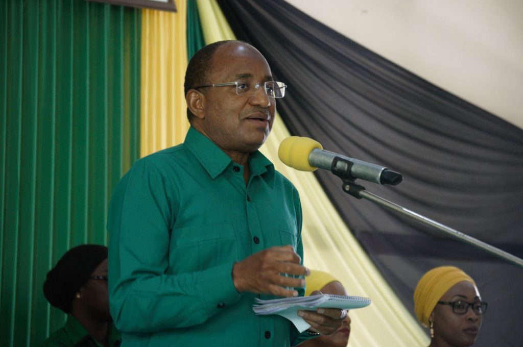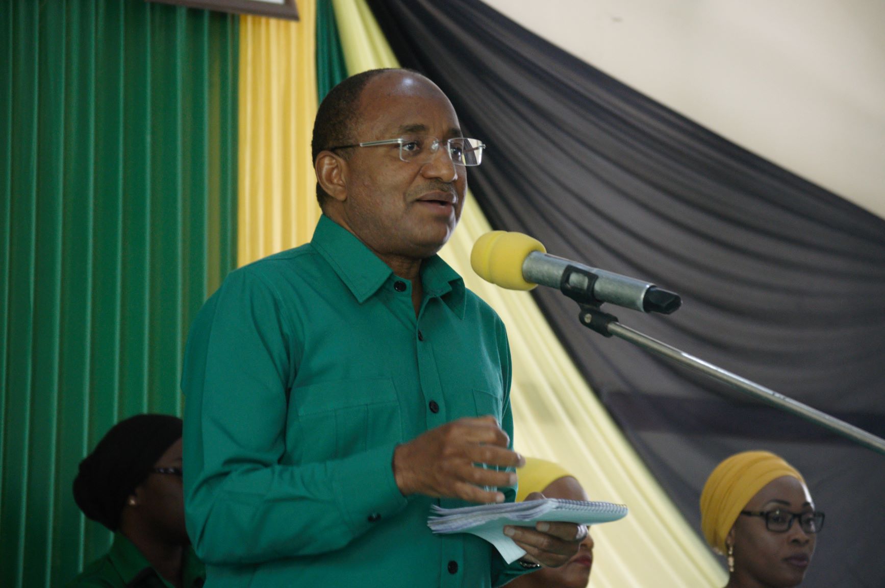 MGOMBEA Urais wa Zanzibar kwa tiketi ya CCM Dk.Hussein Ali Mwinyi, akizungumza na Viongozi na Wadau wa michezo katika hoteli ya Misali Pemba.