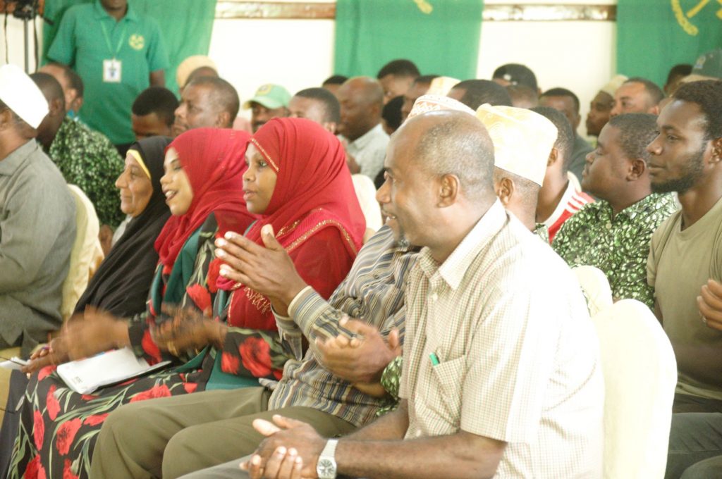 BAADHI ya viongozi na wadau wa michezo kisiwani Pemba wakisikiliza nasaha za Mgombea Urais wa Zanzibar kwa tiketi ya CCM Dk.Hussein Ali Mwinyi,wakati akizungumza nao ikiwa ni mwendelezo wa ziara zake za kukutana na makundi mbalimbali.