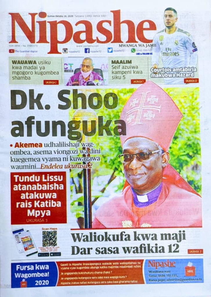 MagazetiPITIA VICHWA VYA HABARI KATIKA MAGAZETI YA LEO OCTOBER 16,2020 Last updated: 2020/10/16 at 5:52 AM Alex Sonna 5 years ago Share SHARE Alex Sonna October 16, 2020 October 16, 2020 Share this Article Facebook Twitter Email Print Previous Article MRADI WA KUTOKOMEZA UKATILI DHIDI YA WANAWAKE NA WATOTO KIPINDI CHA CORONA WAFUNGWA SHINYANGA Next Article VIWANDA VYA CHAI LUPEMBE NA IKANGA VYATEKELEZA AGIZO LA SERIKALI KUWALIPA WAKULIMA-KUSAYA