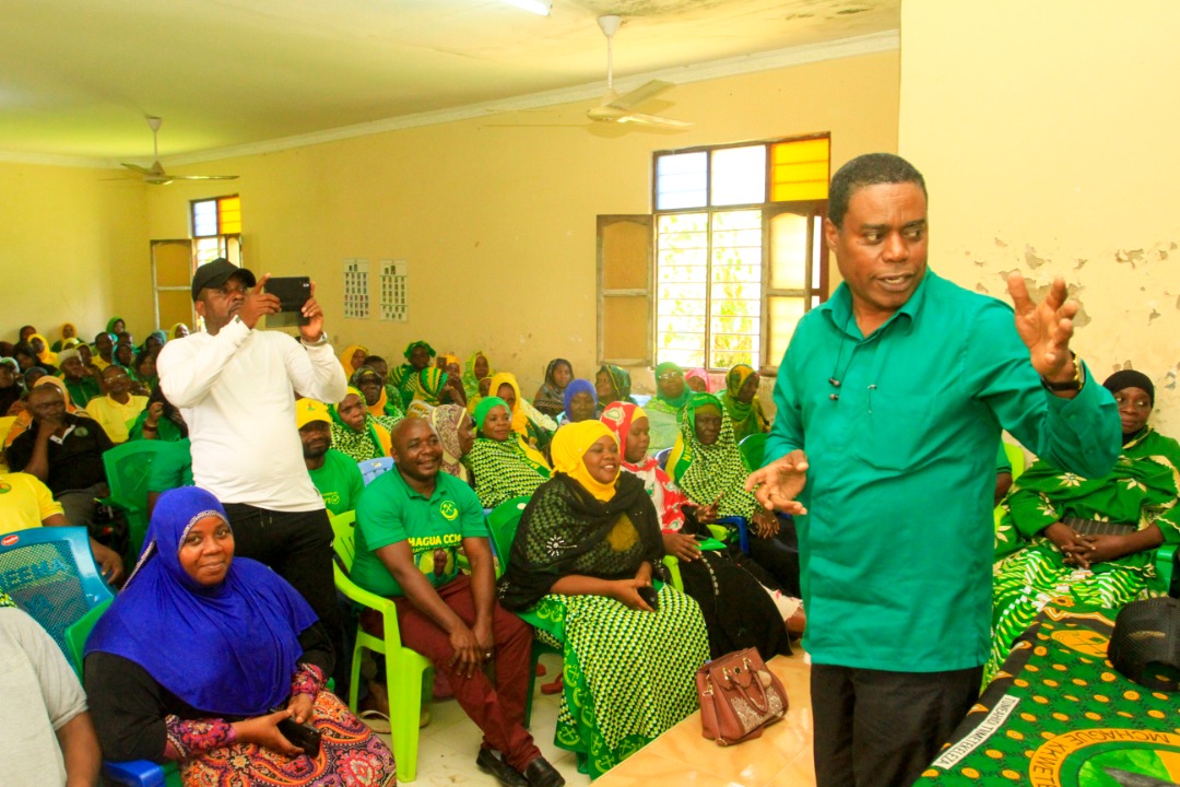 MGOMBEA Ubunge wa Jimbo la Mwera, Zahor Mohammed Haji, akizungumza na Mabalozi wa Nyumba kumi wa Chama cha Mapinduzi CCM, katika Ukumbi wa CCM Wilaya ya Mfenesini mjini Unguja Zanzibar leo Okt 17/2020, ikiwa ni muendelezo wa elimu ya kupiga kura kuelekea uchaguzi mkuu wa Okt 28, mwaka huu. (Picha na Muhidin Sufiani)