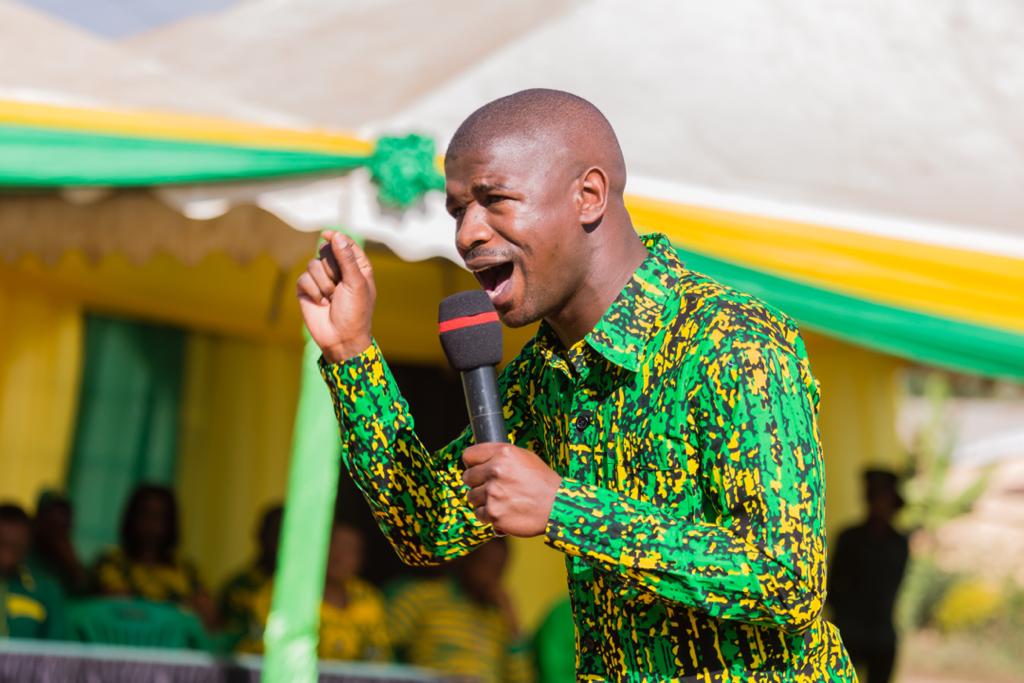 Mwenyewe wa UVCCM mkoa Arusha Omary Lumato Akiongea akimuombea kura Rais Magufuli katika mkutano wa adhara uliofanyika katika kata ya Kiranyi
