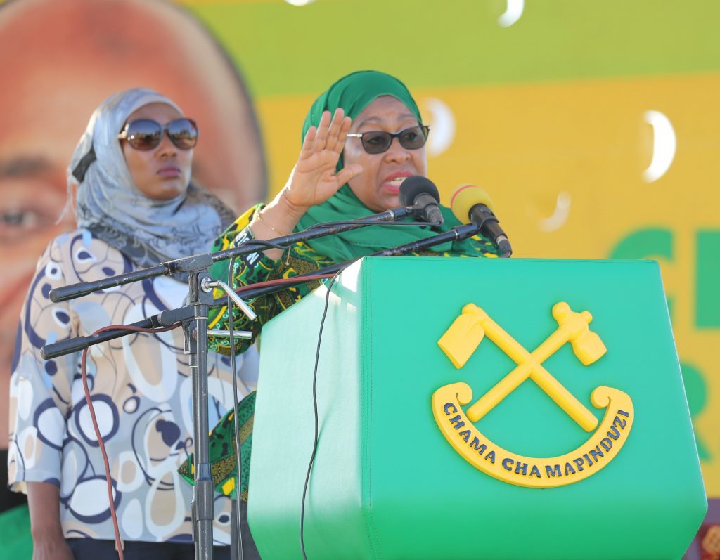 Mgombea Mwenza wa Kiti cha Urais wa Jamhuri ya Muungano wa Tanzania kwa tiketi ya CCM ambae pia ni Makamu wa Rais wa Jamhuri ya Muungano wa Tanzania Mhe. Samia Suluhu Hassan, akihutubia Mkutano wa kampeni za Chama cha Mapinduzi CCM kwa Wanachama wa Chama cha mapinduzi CCM na Wananchi wa Jimbo la Paje katika Uwanja wa Shule ya Sekondari Paje Wilaya ya Kusini Mkoa wa Kusini Unguja