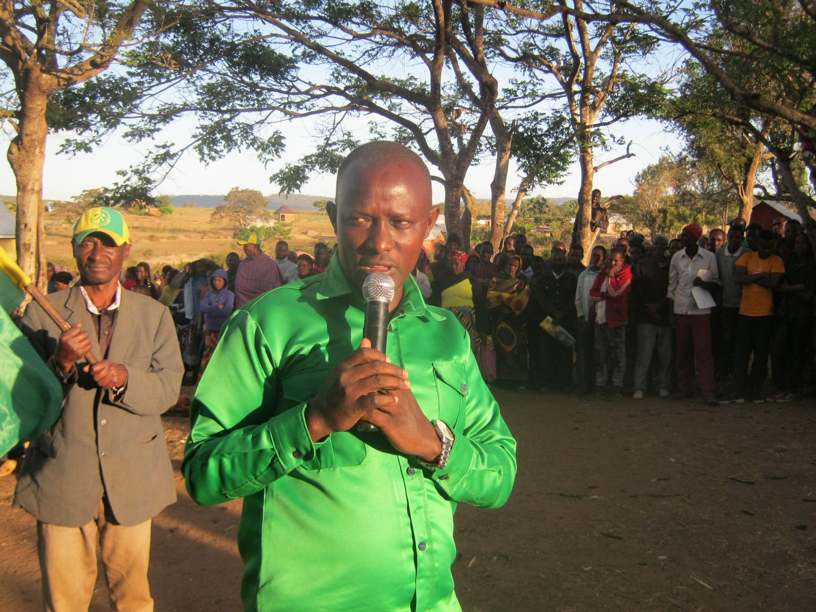 Mgombea ubunge Jimbo la Hanang’ Mkoani Manyara, kwa tiketi ya CCM, mhandisi Samwel Hhayuma akizungumza na wananchi wa Kata ya Ganana wakati akiomba kura zake, za mgombea urais wa CCM Dkt John Magufuli na mgombea udiwani Isaya Mbise.