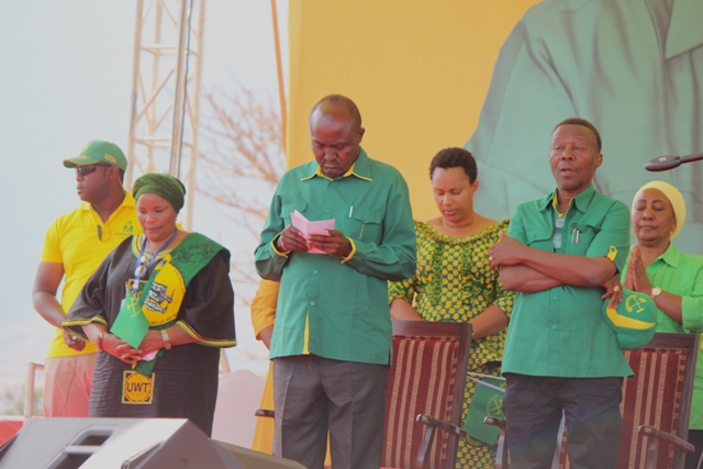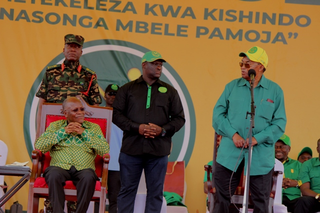 Viongozimbalimbali wa CCM wakiwa wameketi jukwaa kuu katika mkutano huo