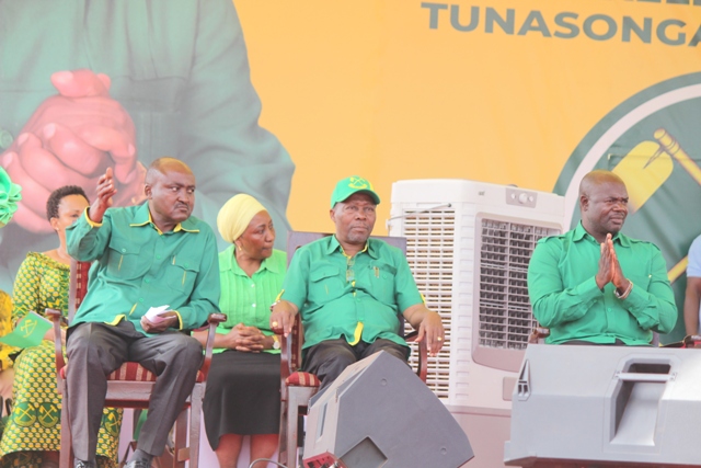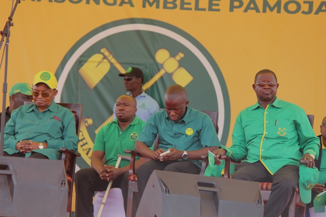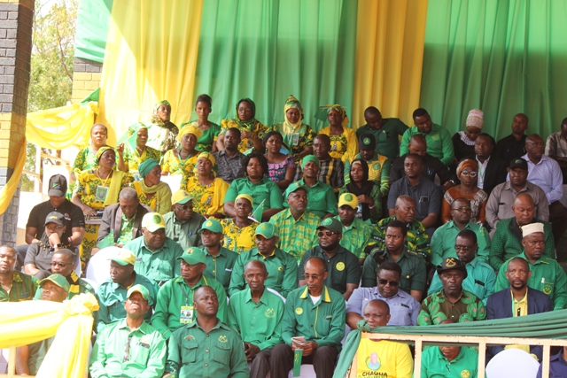 Viongozimbalimbali wa CCM wakiwa wameketi jukwaa kuu katika mkutano huo