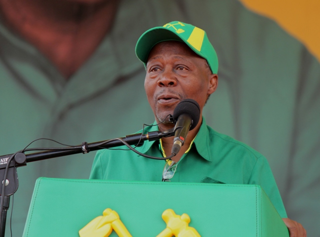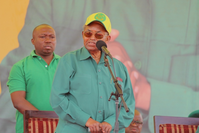 Waziri Mkuu Mstaafu mzee Cleopa Msuya akitoa salamu zake kwa Rais Dk. John Pombe Magufuli kabla ya kutoa hotuba yake kwa wananchi wa Mwanga.