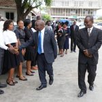 Mwenyekiti wa Chama cha mapinduzi mkoa wa Kilimanjaro Ndugu Patrick Boisafi akimkaribisha mgombea Urais wa Jamhuri ya Muungano wa Tanzania kupitia CCM Rais Dk. John Pombe Magufuli ili kuwahutubia wananchi wa Mwanga.