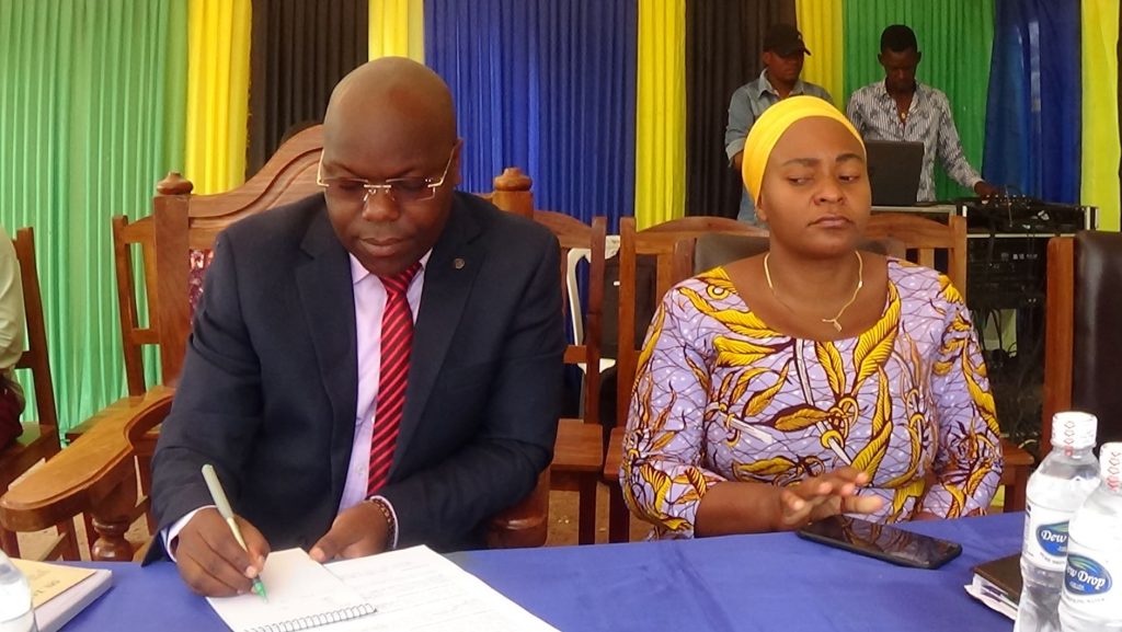 Mkuu wa Mkoa wa Katavi Juma Homera akiwa ameketi na Mkuu wa Wilaya ya Mpanda Jamillah Yusuf katika hafla ya kukabidhi mikopo kwa wajasiriamali