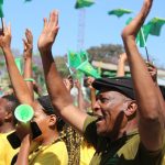 Baadhi ya wananchi wa Kata ya Mandawa, wilayani Ruangwa, wakimshangilia Mjumbe wa Kamati Kuu ya Halmashauri Kuu ya Taifa ya CCM, Kassim Majaliwa wakati alipohutubia. Oktoba 23, 2020