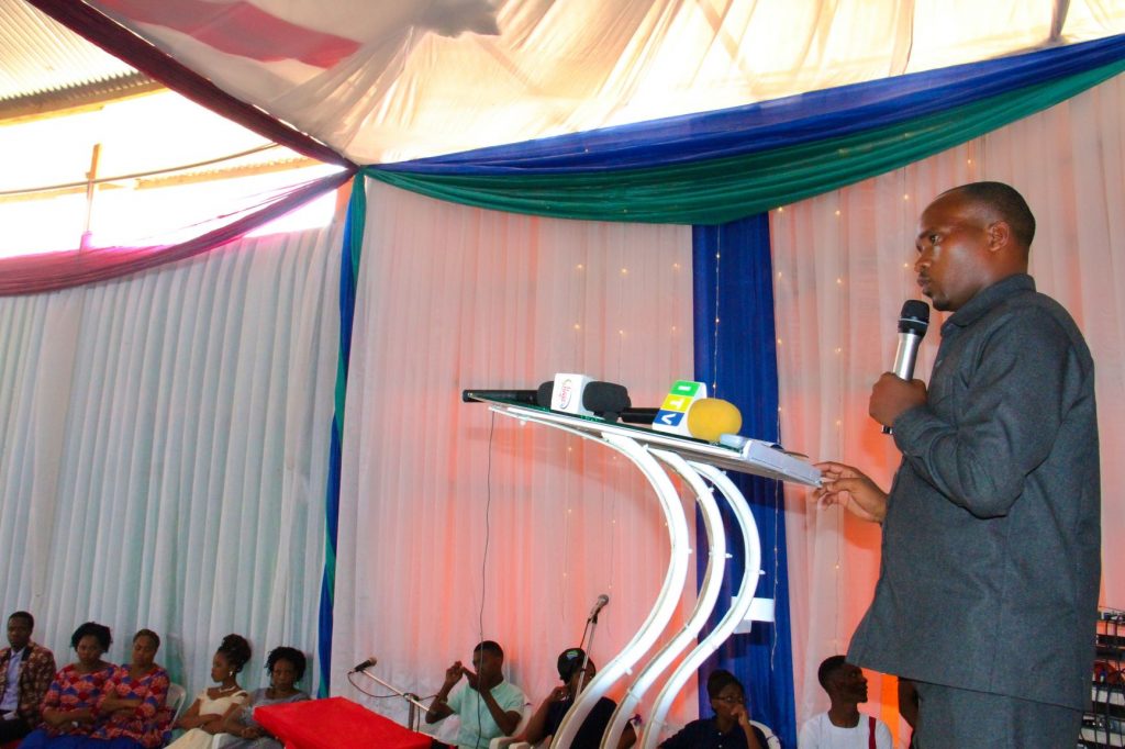 Muwakilishi wa Mkuu wa wilaya ya Dodoma,Afisa Tarafa ya Zuzu,Lucas Mbise,akizungumza na waumini wa Kanisa la Uweza wa Bwana Tanzania wakati wa maombi maalum kwa ajili ya kuliombea Taifa kufanya uchaguzi kwa Amani Ibada hiyo imefanyika jijini Dodoma.