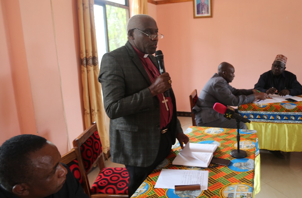 Askofu wa Kanisa la Kiinjili la Kilutheri Tabora Dkt. Isaac Kissiri Laiser akitoa mchango wake jana katika kikao cha Kamati ya Amani Mkoa wa Tabora kuhusu uchaguzi ujao.