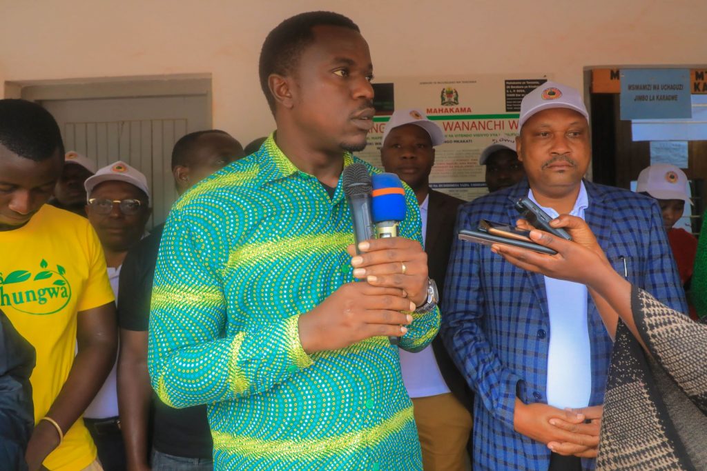 Aliyekuwa Mgombea ubunge jimbo la Karagwe, Innocent Bashungwa akiongea na wananchi waliojitokeza kusikiliza matokeo ya uchaguzi baada ya Mkurugenzi Mtendaji wa Halmashauri ya Wilaya ya Karagwe na Msimamizi wa Uchaguzi Jimbo la Karagwe Godwin M. Kitonka kumtangaza Mgombea ubunge jimbo la Karagwe, Innocent Bashungwa kuwa mshindi wa Ubunge jimbo la Karagwe katika uchaguzi mkuu uliofanyika Oktoba 28, 2020. Karagwe, Kagera.