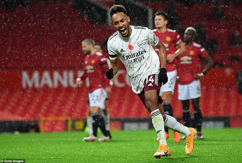 Nahodha Pierre-Emerick Aubameyang akishangilia baada ya kuifungia Arsenal bao pekee kwa penalti dakika ya 69 kufuatia Paul Pogba kumchezea rafu Hector Bellerin katika ushindi wa 1-0 dhidi ya wenyeji, Manchester United kwenye mchezo wa Ligi Kuu ya England Uwanja wa Old Trafford PICHA ZAIDI SOMA HAPA