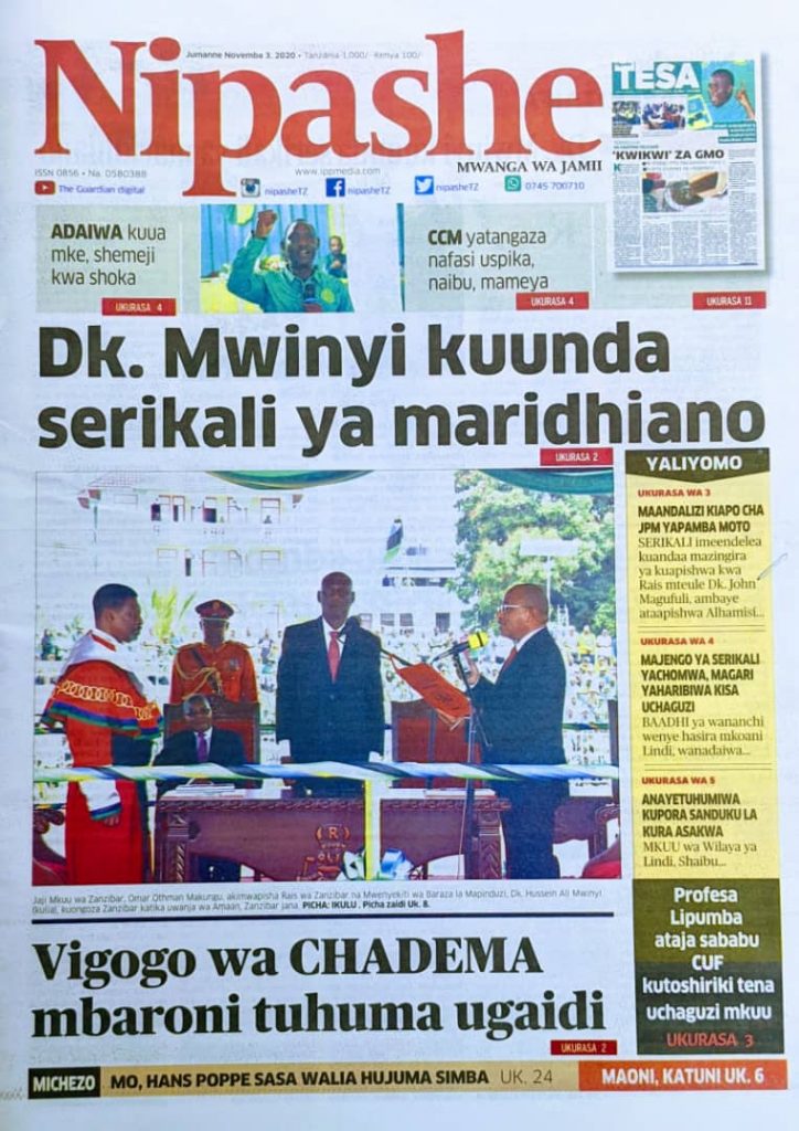 MagazetiPITIA VICHWA VYA HABARI KATIKA MAGAZETI YA LEO NOVEMBA 3,2020 Last updated: 2020/11/03 at 3:24 AM Alex Sonna 5 years ago Share SHARE Alex Sonna November 3, 2020 November 3, 2020 Share this Article Facebook Twitter Email Print Previous Article APS YATOA MSAADA WA TAULO ZA KIKE ‘KIPEPEO PAD’ SHINYANGA Next Article NATIRO WAHITAJI MSAADA ,CRDB YAANZISHA MWENDO KWA MIL 10