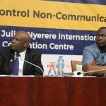 Mkurugenzi Mtendaji wa kampuni ya Jackson Group Sports Kelvin Twissa akiwatambulisha Hussein Itaba wa Tanzania (kulia) na Alex Kabangu wa DR Congo.