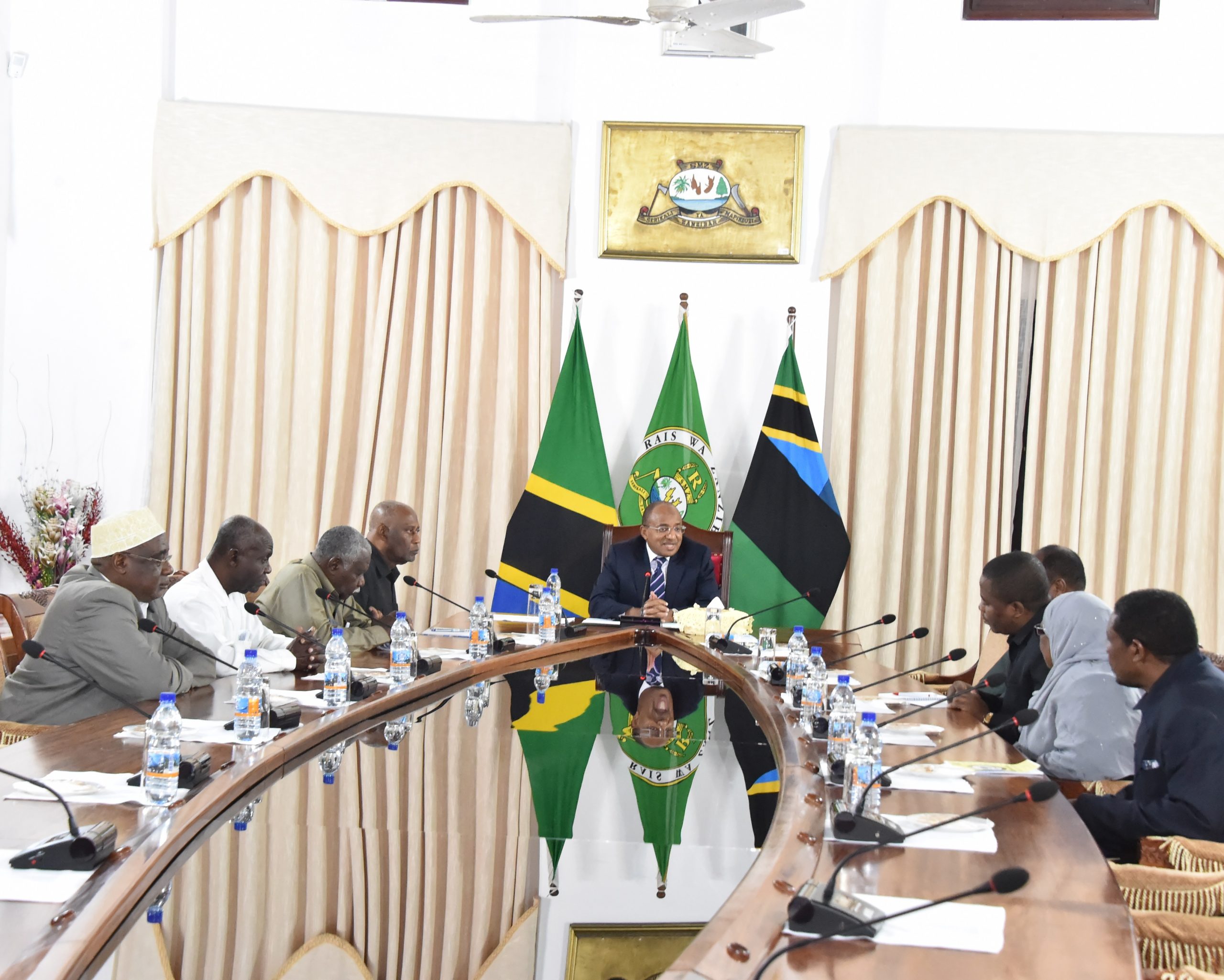Rais wa Zanzibar na Mwenyekiti wa Baraza la Mapinduzi Dk.Hussein Ali Mwinyi (katikati) akizungumza na Viongozi wa Tume ya Uchaguzi Zanzibar (ZEC) alipokutana nao leo Ikulu Jijini Zanzibar kwa ajili ya kuwashukuru na kuwapongeza kwa kazi ya kufanikisha vyema Uchaguzi Mkuu uliopita hivi karibuni.