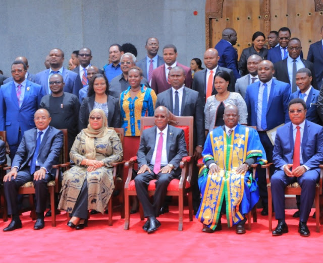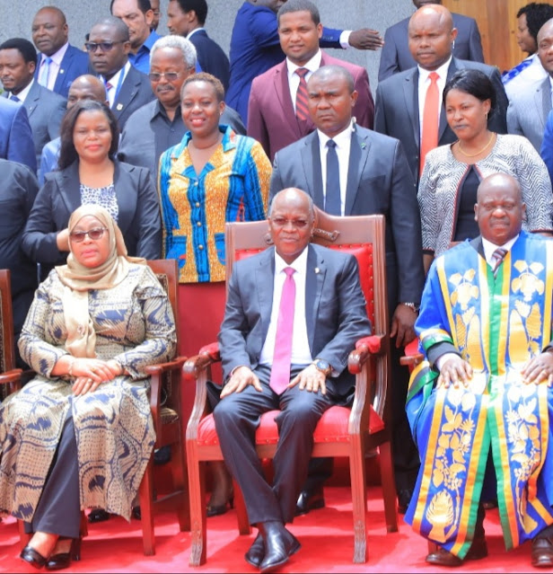kwenye picha ya Pamoja na Rais Dkt John Magufuli aliyekaa katikati