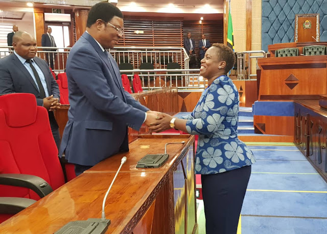 kushoto ni Makamu wa Rais Samia Suluhu na kulia ni Spika wa Bunge Job