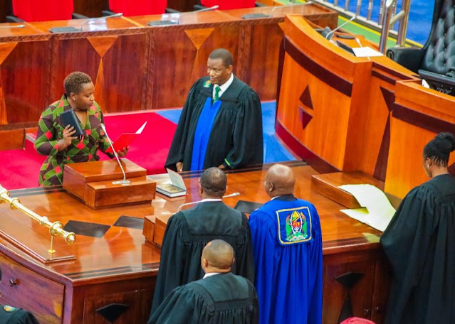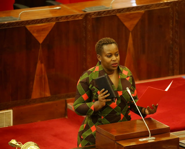 | MBUNGE wa Viti Maalumu kupitia kundi la Asasi za Kiraia nchini (NGOs) Tanzania Bara Neema Lugangira akila kiapo cha kuwa mbunge Bungeni |