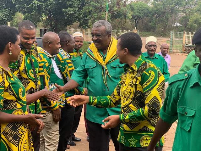 Mwenyekiti wa Jumuiya ya Wazazi ya Chama Cha Mapinduzi (CCM) Taifa, Dk.Edmund Mndolwa, akisalimiana na wanajumuhiya hiyo wa Mkoa wa Kilimanjaro baada ya kuwasili katika ziara ya kikazi.