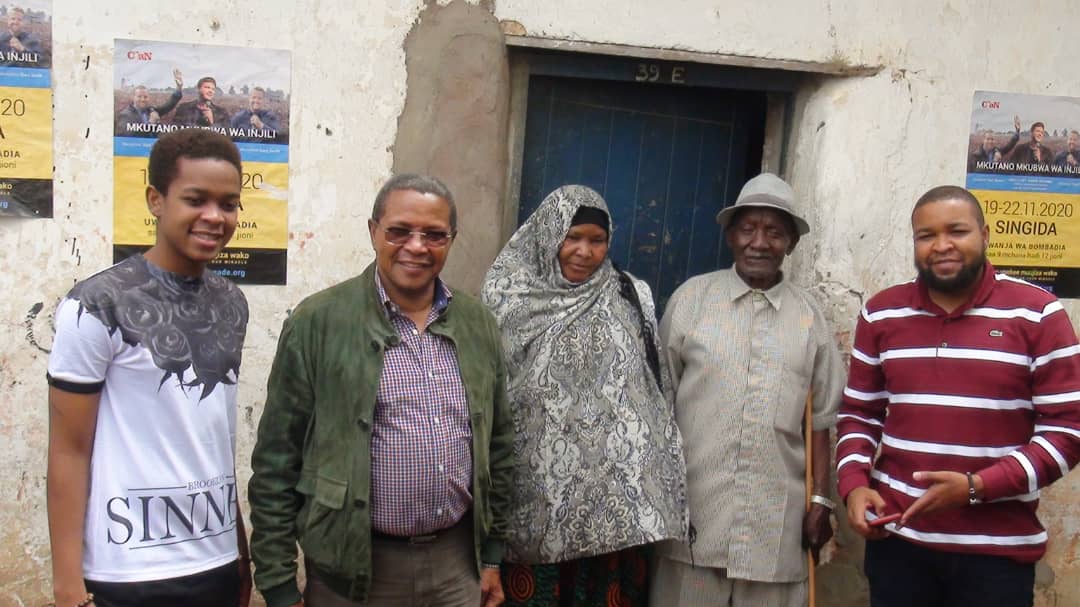 Rais mstaafu wa Nne wa Jamuhuri ya Muungano wa Tanzania, Dkt. Jakaya Mrisho Kikwete, akiwa na Mzee Andrew (wa pili kulia) ambaye ni mmiliki wa nyumba aliyokuwa akiishi wakati akifanyakazi mkoani Singida. Katikati ni mke wa Mzee Andrew. Wengine ni watoto wa Mheshimiwa Kikwete.