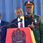 Mkuu wa Mkoa wa Mjini Magharibi Mhe.Hassan Khatibu Hassan (katikati) alipokuwa akitoa maelezo mbele ya Rais wa Zanzibar na Mwenyekiti wa Baraza la Mapinduzi Dk.Hussein Ali Mwinyi kuhusu Mradi wa katika Eneo la Soko la Kijangwani Wilaya ya Mjini kabla Rais, kuzungumza na Wajasiriamali wadogo wadogo katika Soko hilo leo akiwa katika ziara ya Kikazi kujuwa Changamoto mbali mbali zinazowakabili Wafanyabiashara hao.[Picha na Ikulu.] 18/11/2020.