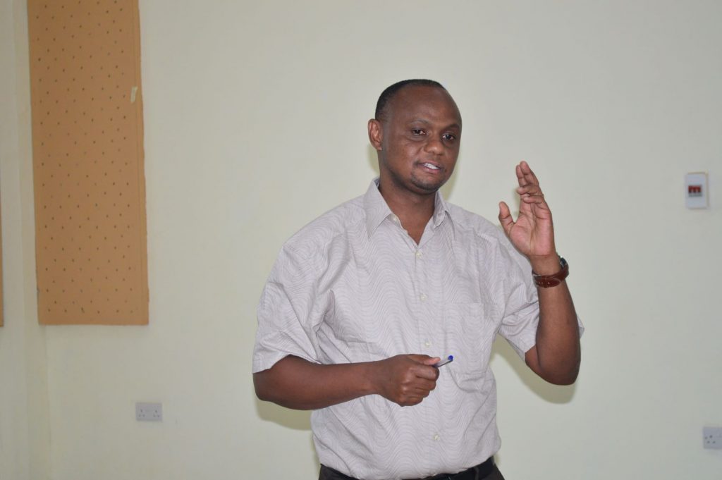 Mkurugenzi msaidizi wa Shirika la TFCG bwana Emmanuel Lyimo akieleza malengo ya utafiti huo uliofanywa na watafiti kutoka SUA kabla ya kuanza rasmi kusikiliza matokeo hayo ya utafiti.