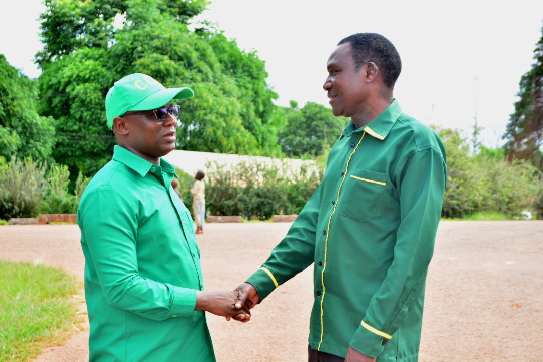 Mbunge wa jimbo la Biharamulo Magharibi Mhe. Eng. Ezra John Chiwelesa kushoto akimpongeza mwenyekiti wa halmashauri aliyechaguliwa Mhe. Rushahu Leo Mathew kulia mara baada ya zoezi la uchaguzi kuisha.