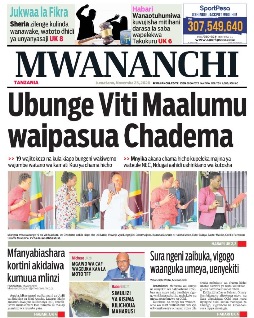 MagazetiPITIA VICHWA VYA HABARI KATIKA MAGAZETI YA LEO NOVEMBA 25,2020 Last updated: 2020/11/25 at 3:34 AM Alex Sonna 5 years ago Share SHARE Alex Sonna November 25, 2020 November 25, 2020 Share this Article Facebook Twitter Email Print Previous Article VIJIJI VYANEEMEKA NA UHIFADHI WA MISTU YA VIJIJI. Next Article ZIARA YA TIMU YA JIJI LA DODOMA MKOANI DAR