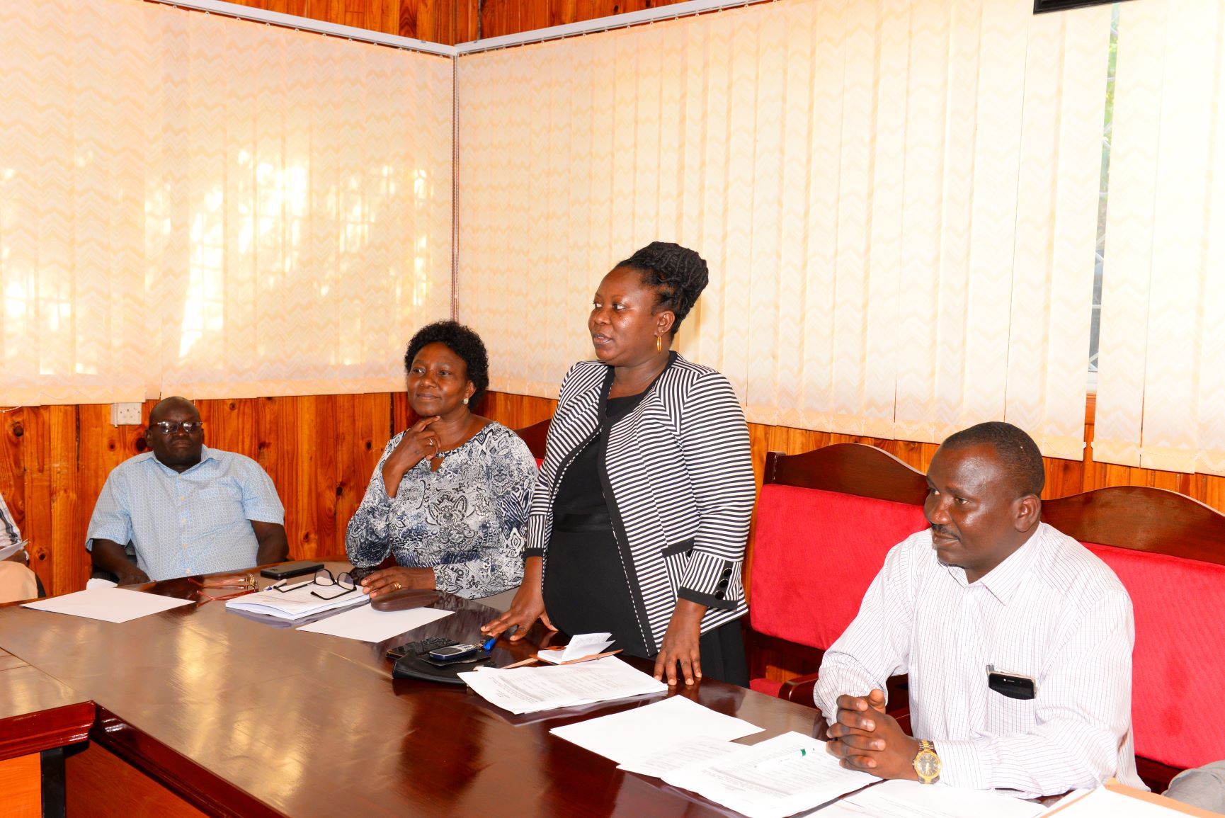 Baadhi ya Wajumbe wakisikiza kwa makini maelezo ya Mkurugenzi wa Utawala na Rasilimali Watu Bi. Felister Shuli (hayupo pichani) ambaye alimwakilisha Katibu Mkuu wa ofisi hiyo.