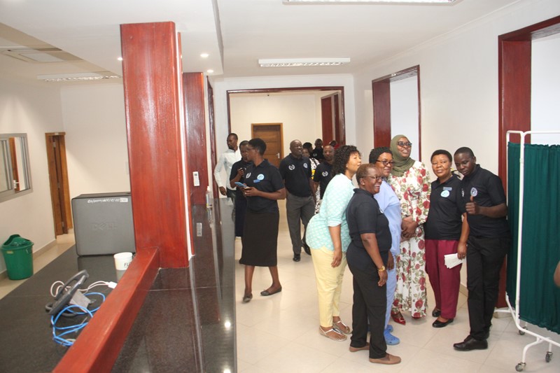 suti) na Naibu Katibu Mkuu Ofisi ya Rais Tamisemi, Dk. Doroth Gwajima (wa tatu kulia) kwenda kuzindua ukarabati wa chumba cha dharula na