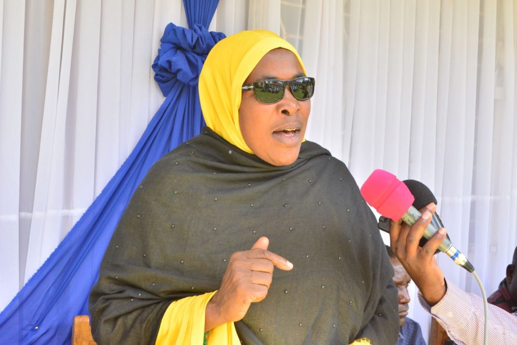 Mwenyekiti wa jumuiya ya umoja wa wanawake Taanzania mkoa wa Kagera UWT na mkurugenzi wa kampuni ya Samudi Investment akiongea katika hafla ya kukabidhi mifuko 100 ya saruji kwaajili ya kusaidia ujenzi wa vyumba vya madarasa wilaya ya Biharamulo.