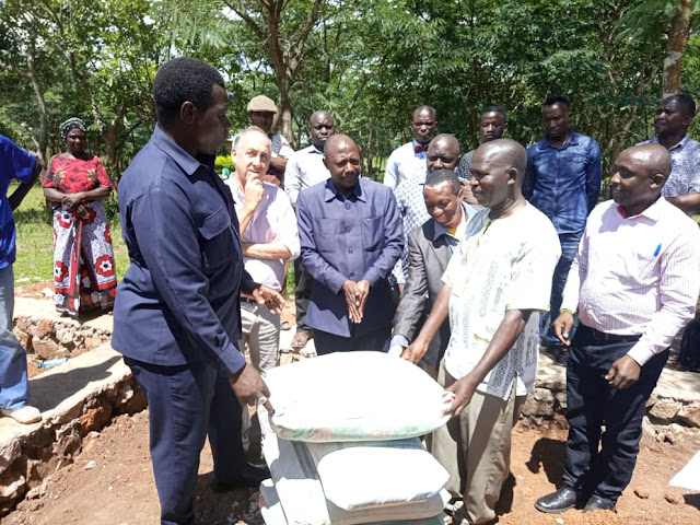 Mkuu wa wilaya ya Kakonko, Kanali Hosea Ndagala akikabidhiwa mifuko ya saruji 100 na Kampuni ya Ujenzi ya Nyanza Road kwa ajili ya ujenzi wa Shule ya Sekondari Kanyonza ikiwa ni maandarizi ya kupokea wanafunzi wapya wa kidato cha kwanza Januari 2021 aliushukuru uongozi wa kampuni hiyo na kumpongeza mbunge huyo kwa kuanza kwa kasi kutekeleza ilani ya uchaguzi ya chamsingi hicho ya 2020/ 2025.