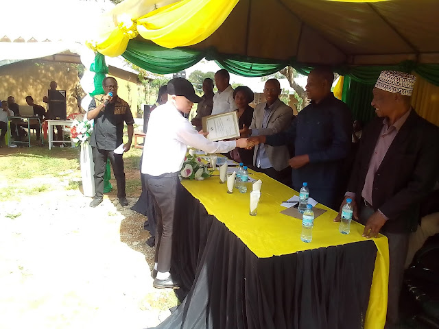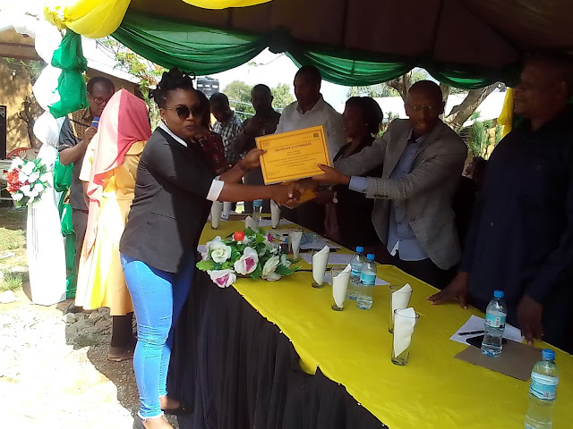 Mmoja wa wahitimu akipokea cheti cha kuhitimu mafunzo.