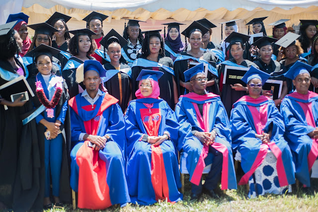 Mgeni rasmi, uongozi wa Chuo cha Manjano Bauty Academy na Wahitimu wakiwa katika picha ya pamoja.