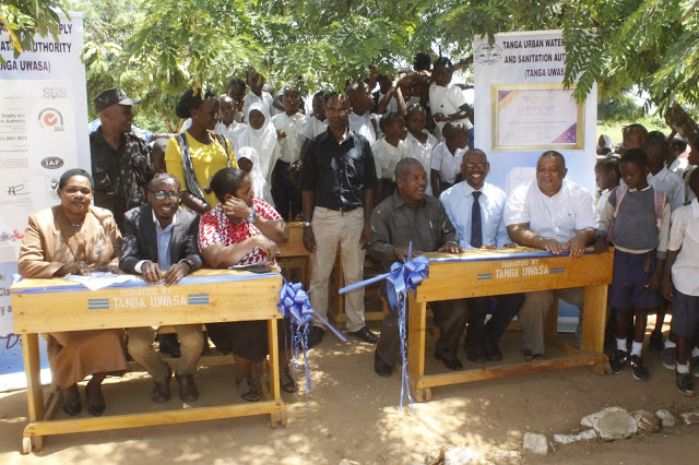 Makabidhiano hayo yalifanyika shuleni hapo na Meneja wa Huduma kwa Wateja wa Tanga Uwasa Alawi Ahmad Meneja (kwa niaba ya Mkurugenzi Mtendaji) kwa Mkuu wa wilaya ya Tanga Thobias Mwilapwa.