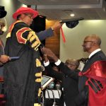 Mkuu wa wilaya ya Kinondoni, Mhe. Daniel Chongolo akimkabidhi zawadi Miriam Deus kwa kutumia mtandao wa Vodacom kwa muda mrefu