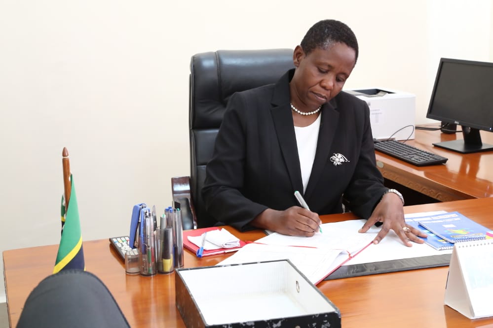Waziri wa Afya, Maendeleo ya Jamii, Jinsia, Wazee na Watoto Dkt. Dorothy Gwajima akisaini kitabu pindi alipowasiri katika ofisi za Wizara ya Afya Jijini Dodoma.