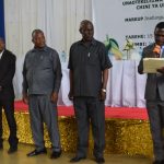 | Mhandisi wa Umwagiliaji Mkoa wa Dodoma,Raphael Laiza akipokea Maagizo ya Mh. Waziri Bashe, hayupo katika picha, kwenye ukumbi wa Halmashauri ya Wilaya ya Bahi. |