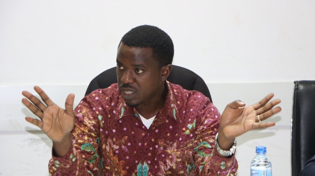 Naibu Waziri wa Habari, Utamaduni, Sanaa na Michezo Mhe. Abdallah Ulega akizungumza na Watendaji wa Baraza la Michezo la Taifa (hawapo pichani) wakati alipofanya ziara katika Baraza hilo na Waziri wa wizara hiyo Mhe. Innocent Bashungwa (alievaa shati ya maua) ambapo amelitaka baraza hilo kufanya mapinduzi katika kuendeleza michezo. Ziara hiyo imefanyika Desemba 18,2020Jijini Da es Salaam.