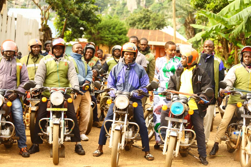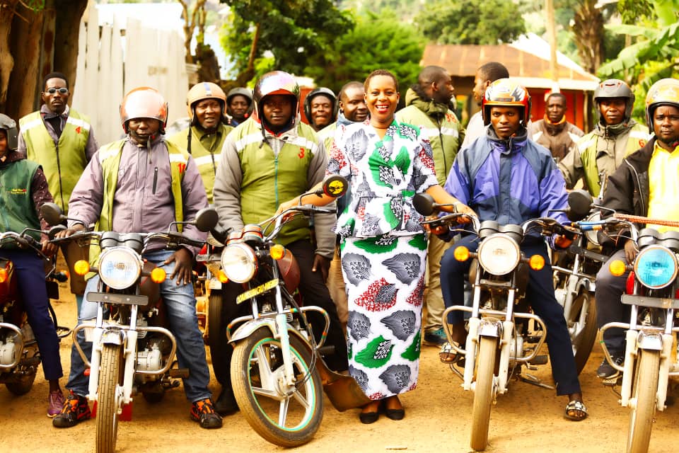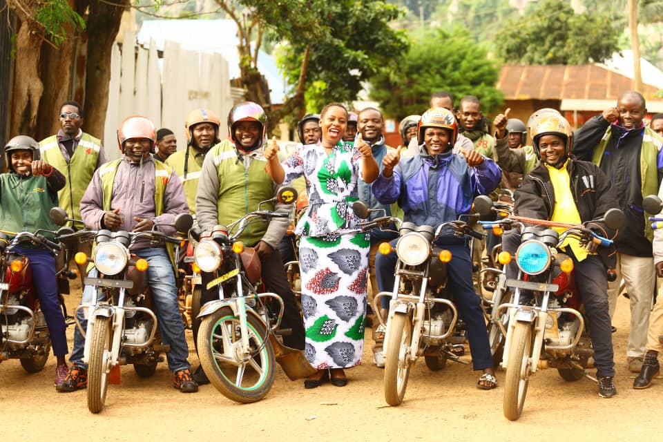 Neema Lugangira katikati akiwa kwenye picha ya pamoja na bodaboda wa