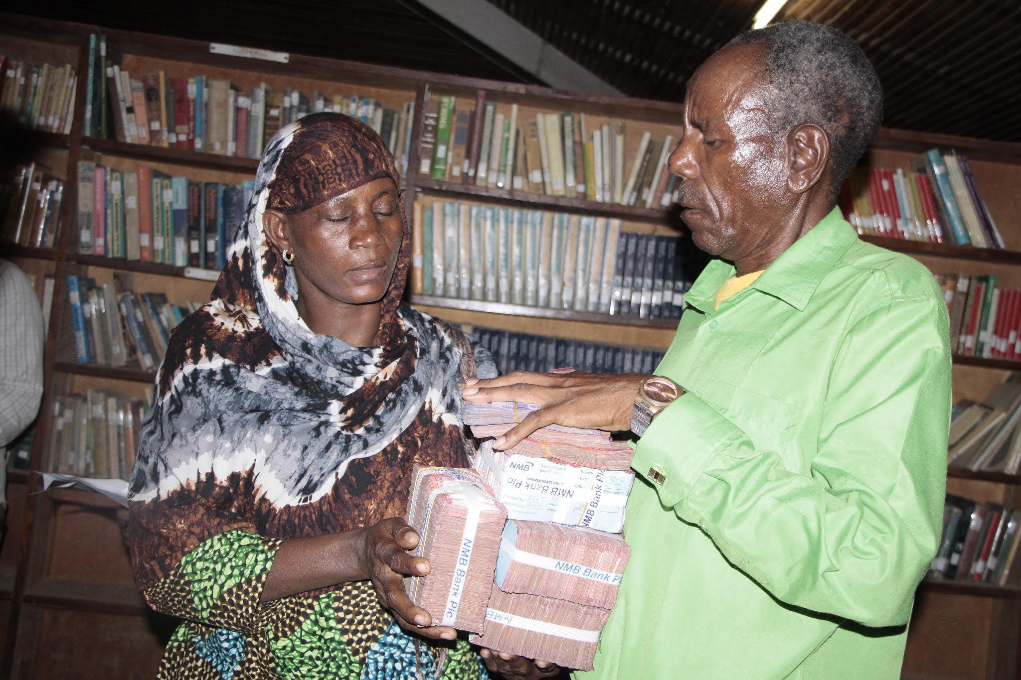Muathirika wa Mikopo Umiza Loth Mwangu, akiwa na fedha zake baada ya kukabidhiwa.