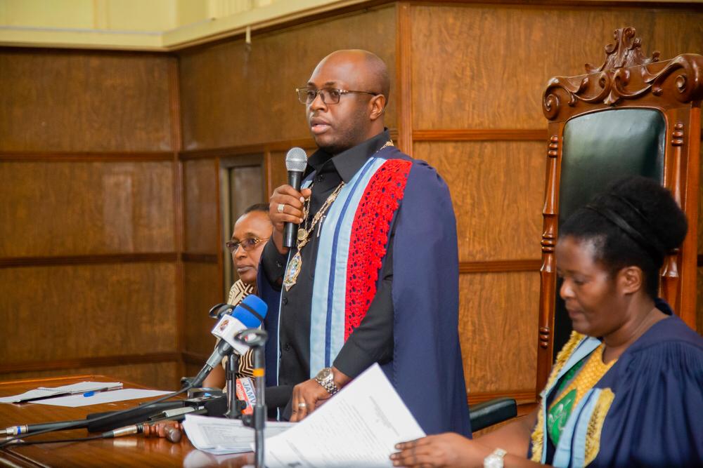 Mara Baada ya kiapo hicho Mstahiki Meya alianza Kwa kumshukuru Mungu kwa kuwapa uhai na kusimamia michakato yote mpaka kukamilika kwa wao kuapa,