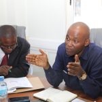 Waziri wa Habari, Utamaduni, Sanaa na Michezo Mhe. Innocent Bashungwa, Naibu Waziri Mhe. Abdallah Ulega na Katibu Mkuu wa wizara hiyo Dkt. Hassan Abbasi wakimsikiliza Mtendaji Mkuu wa Taasisi ya Hakimiliki Tanzania Bi Doreen Sinare (aliyesimama) wakati viongozi hao walipoitembelea Taasisi hiyo Desemba 23, 2020 Jijini Dar es Salaam.