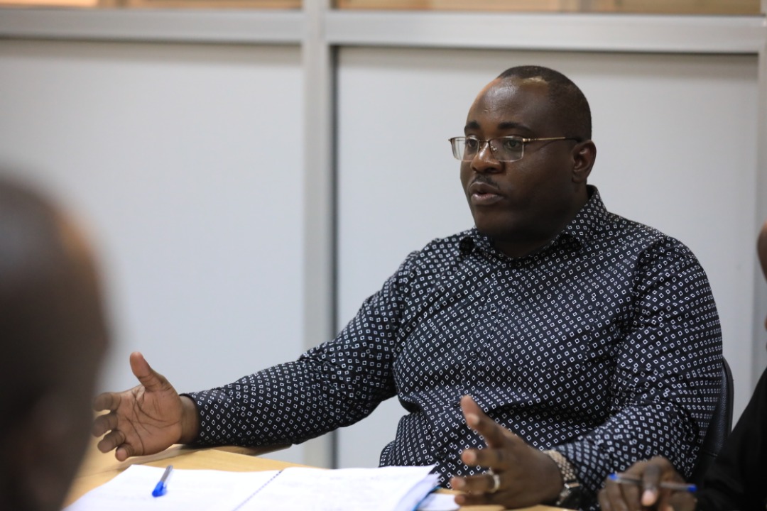 Naibu Waziri wa Habari, Utamaduni, Sanaa na Michezo Mhe. Abdallah Ulega akizungumza na Watendaji wa Taasisi ya Hakimiliki Tanzania (hawapo pichani) alipofanya ziara katika Taasisi hiyo akiwa Waziri wake Mhe. Innocent Bashungwa pamoja Katibu Mkuu wa wizara hiyo Dkt. Hassan Abbasi (hawapo pichani). Ziara hiyo imefanyika Desemba 23, 2020 Jijini Dar es Salaam.