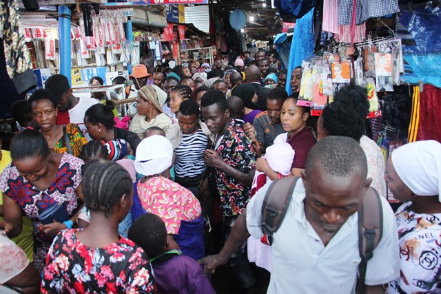 Wakazi wa Dodoma wakisongamana eneo la maduka walipokwenda kupata mahitaji leo Deema 24,2020 katika Soko la Sabasaba jijini Dodoma, kwa ajili ya maandalizi ya sherehe ya Krismasi inayosherehekewa Duniani kote Desemba 25. Picha na Richard Mwaikenda.