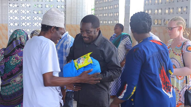 Mgane Hussein Libe akishukuru baada ya kupokea msaada huo.