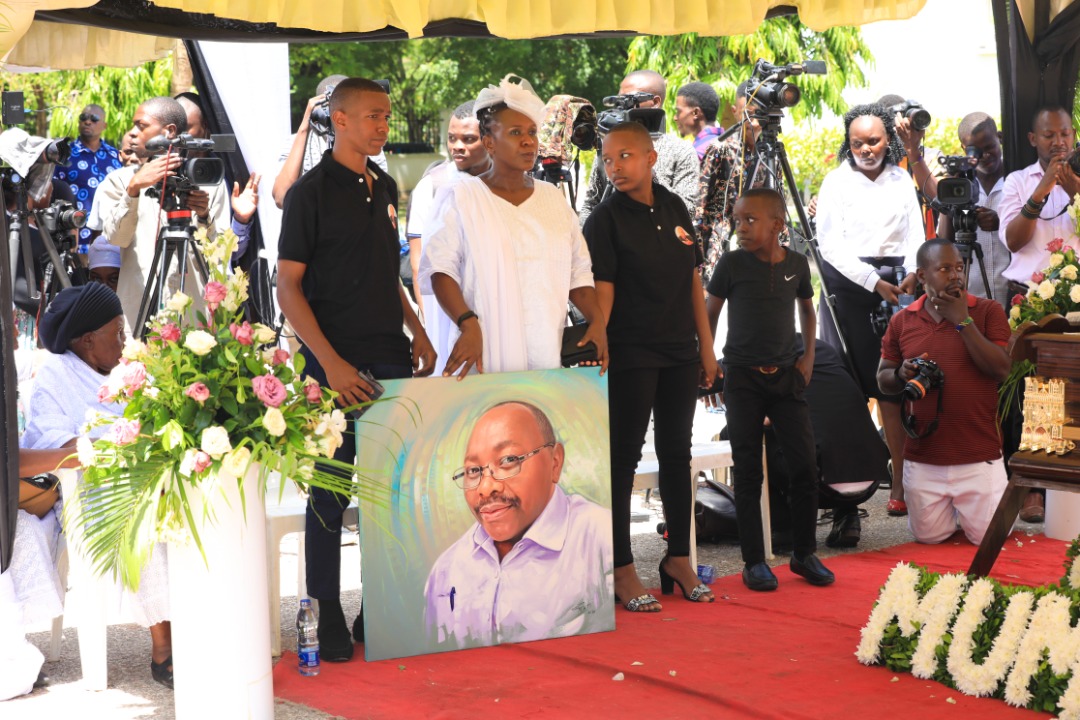 Mke wa Marehemu Godfrey Mngereza aliyekuwa Katibu Mtendaji Baraza la Sanaa Tanzania Bibi. Suzan Mngereza akiwa katika picha ya pamoja na watoto wake wakati wa kuaga mwili wa mumewe katika Uwanja wa Karimjee leo Desemba 29, 2020 Jijini Dar es Salaam.