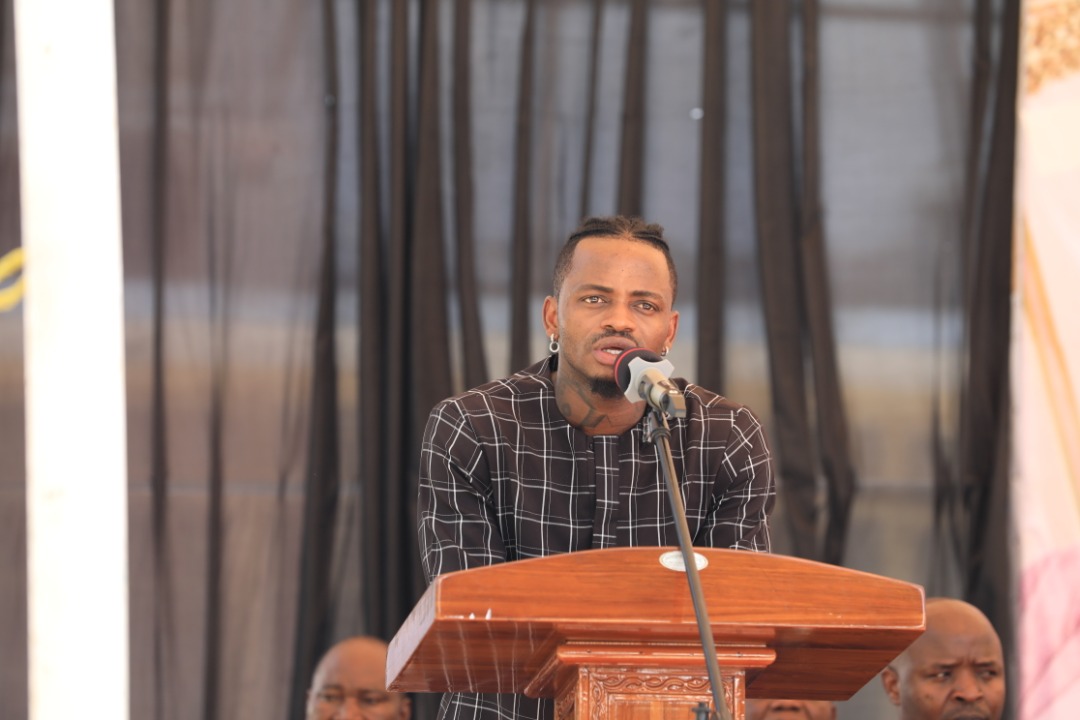 Msanii wa Bongo Fleva anayefanya vizuri hivi sasa Nasibu Abdul (DiamondPlatnumz) akitoa salamu za pole katika hafla ya kuaga mwili wa aliyekuwa Katibu Mtendaji Baraza la Sanaa Tanzania Godfrey Mngereza leo Desemba 29,2020 Jijini Dar es Salaam katika Uwanja wa Karimjee.